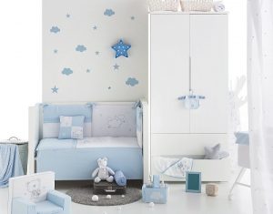 En cuanto a los colores, es mejor no usar colores vivos y estridentes, que afectarán al estado de ánimo del pequeño. Los colores deben proporcionar un ambiente cálido y relajante. Algo a tener en cuenta también para la elección de los textiles. Colecciones para bebés como la de Pirulos, de La Huerta, os permitirá encontrar vuestro color preferido y siempre con una colección completa. Edredón, protector, cojín, saco nórdico, sábanas, capas de baño o arrullo de punto, serán algunos de los textiles que necesitaréis. Dentro de Pirulos, podéis echar un vistazo a la colección “Osito star” con gamas de color azul, rosa y lino.