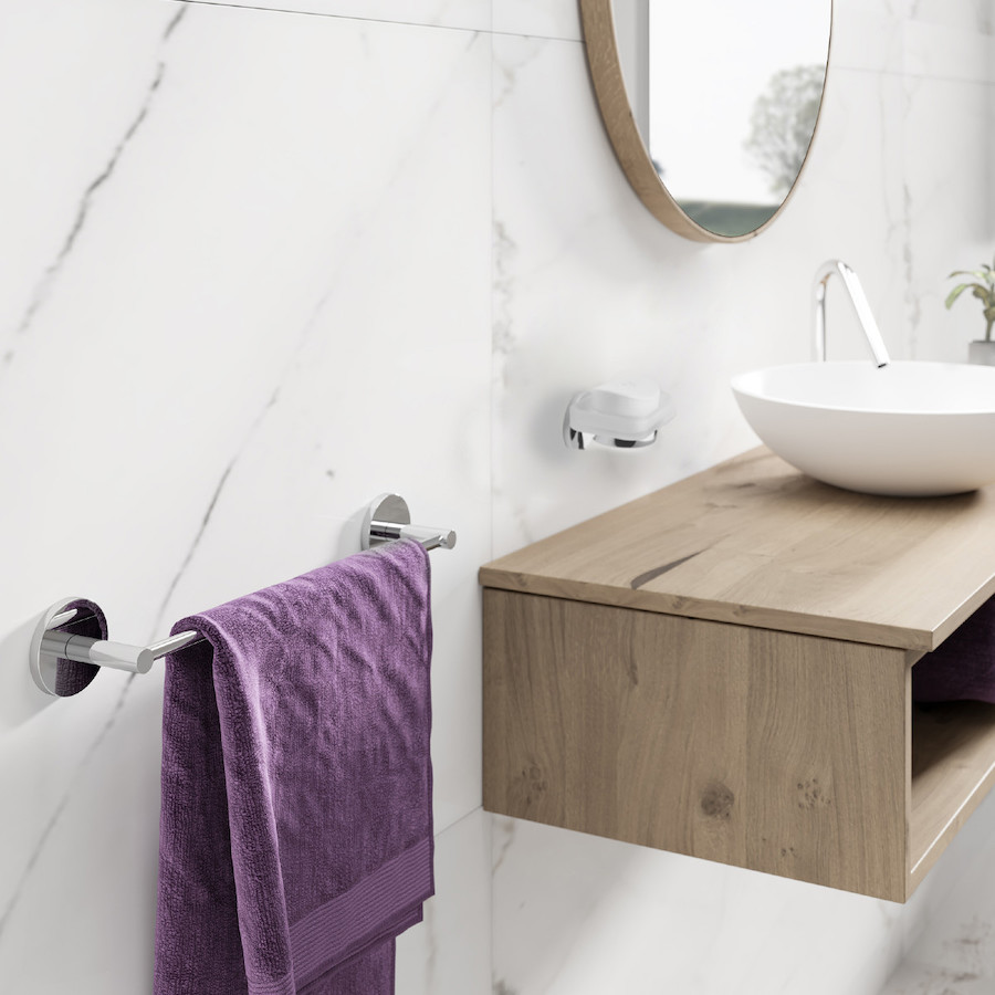 A continuación elegiremos los textiles. Además de la alfombrilla o cortina de ducha, si es que nos hace falta, las toallas son perfectas para completar la paleta de color de nuestro baño ideal. Toallas como las de La Huerta, 100% algodón, nos darán ese plus de comodidad y convertirá nuestro baño en un auténtico spa. Además, si usamos albornoces, podemos dejarlos a la vista como complemento visual.