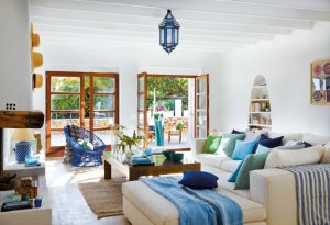 Para hacer contraste con este estilo de reminiscencias antiguas, en pintura, mobiliario y ropa de hogar es aconsejable elegir una paleta de color neutra, con ciertos toques de color, que aporte la renovación y la atemporalidad y una el estilo de toda la casa. La madera o el cáñamo son algunos materiales ganadores en este tipo de decoración. También las fibras naturales en los textiles, que aportarán parte del aspecto rústico y llamarán la atención sobre todo en el salón, a través de los cojines y los plaids. En cuanto a los detalles, se pueden rescatar muchas piezas que, con moderación, pueden completar una decoración que siga respetando la esencia de la casa desde la modernidad: alacenas o vitrinas, una cómoda o un escritorio repintados a mano, vajilla o libros antiguos… Las flores, por otro lado, aportarán frescura y sensación de ambiente natural a la casa.