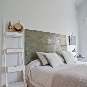 También se puede dar un toque especial a los cabeceros con pintura en oro, plata o cobre. Es una opción muy actual y que hará destacar la zona de la cama. Las formas geométricas le irán muy bien a este tipo de acabados. Pintar una sola línea en la parte superior, dibujar un marco interior o hacer líneas diagonales por toda la superficie, son solo algunas ideas. Te puedes ayudar de cinta americana para delimitarlas. Pero recuerda que el cabecero habrá de ser en un color neutro para que el estilo no quede excesivo y case bien con tu decoración. Recuerda que para hacer el cabecero de madera, un truco alternativo es juntar varios tablones y repintarlos o dejarlos con su aspecto envejecido. Pero con cuidado de que estén bien lijados y no tengan astillas sueltas. En este sentido, los viejos palets son una opción de reciclaje perfecta.