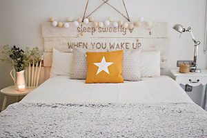 tipografía que te guste, para lo que puedes ayudarte fácilmente de una plantilla. Por ejemplo, en camas para niños, pintar los nombres en su cabecero, o escribir el nombre de la canción preferida de ambos en una cama para dos. Será un detalle muy romántico.