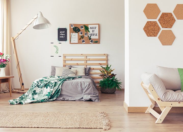 Las fibras naturales también son muy camaleónicas para añadirlas como detalles y elementos decorativos. Prueba a incluirlas en tu hogar, por ejemplo, con cajas organizativas de mimbre -para el baño, el recibidor o la despensa-, con cestas de esparto como maceteros o para guardar las mantas y plaids en invierno a los pies de la cama o en el salón –la cestería da mucha vida a los rincones vacíos-, o utiliza la soga de cáñamo y esparto para decorar jarrones, velas o incluso para hacer estanterías. Une cuerdas a un par de tablas de madera y tendrás una estantería de estilo rústico. Como se ve, otra ventaja de estos materiales es que se pueden incluir en la decoración a través de una gran variedad de ideas DIY –do it yourself o “hazlo tú mismo”-. La madera reciclada de tablas, cajas y palets puede tener una segunda vida si la convertimos en mesillas de noche, en