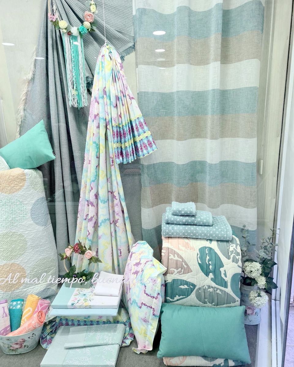 Siguiendo esta línea de lo natural y artesanal, aconsejamos no dejar de lado los tejidos naturales como el lino, el algodón y la seda. Sin embargo, el lino será el rey de la fiesta esta primavera, con su acabado suave y fresco. Apuesta por estos materiales naturales en el salón con fundas para el sofá, cojines y visillos para las ventanas, que encontrarás en La Huerta. Viste también tu cama en el dormitorio y en la terraza y la cocina con manteles o caminos de mesa. Y en cuanto a los cojines, desaparecen los estampados lisos y comenzamos a ver flores, rayas, topos…