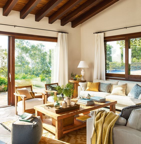 Piensa en un concepto que será indispensable para que puedas decorar tu casa como en una revista: naturalidad. El estilo campestre se ha modernizado y los colores más oscuros para las paredes han pasado de moda. Blanco, beige o colores tierra muy claros deberían predominar para darle luz a las estancias. De esta manera podrás combinarlos con revestimientos como la piedra, la madera o el ladrillo a la vista, siempre en tonalidades claras. Otros elementos estructurales que pueden darle un aspecto campestre a la casa, si podéis incluirlos, serían las vigas de madera, aunque sean incorporadas.